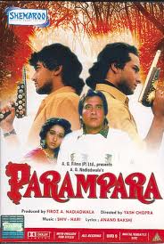 Prithvi and Tara connect instantly and they both fall in love with each other. When Bhavani finds out he quickly arranges Prithvi to marry Rajeshwari (Ashwini Bhave). Confused he ends up marrying both Tara and Rajeshwari. Tara gives birth to a son Ranbir (played by Aamir Khan). Bhavani is livid and leads a raid on Tara's village, killing her and a few other people. Rajeshwari saves Ranbir and brings him home.Gora Shankar threatens Bhavani and is put into jail. Many years pass and Rajeshshwari gives birth to a son, Pratap Prithvi Singh (played by Saif Ali Khan). The two boys are brought up by Prithvi and Rajeshwari until Gora Shankar is released from jail. Shankar enraged by the death of his tribe challenges Bhavani for a duel, but Prithvi takes his father's place and is killed as he doesn't put a bullet in his own gun, letting Gora Shankar win. Rajeshwari along with Bhavani raise Pratap together. Shankar raises Ranbir alone but both sons are told by their relatives the tradition of the duel. Both Ranbir and Pratap attend the same college with their girlfriends Vijaya and Sapna (Raveena Tandon and Neelam Kothari). The four quickly become friends but they both find out each other's past.