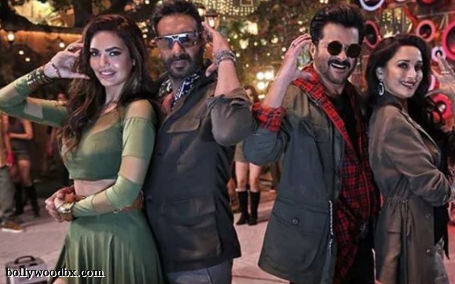 Total Dhamaal starts with a different storyline from Dhamaal and Double Dhamaal. Guddu (Ajay Devgan) and his partner Johnny (Sanjay Mishra) steal ?500 million of black money from the Police commissioner (Boman Irani). As they put the suitcases containing the money in a car, Pintoo (Manoj Pahwa), who is driving the car, double-crosses Guddu and Johnny, running away with the money. After that we are introduced with the other characters of the movie – Bindu Patel (Madhuri Dixit), Avinash Patel (Anil Kapoor), Lallan (Riteish Deshmukh), Aditya Shrivastav (Arshad Warsi), and Manav Shrivastav (Jaaved Jaffrey). Adi and Manav are the only characters the same as the prequels.
