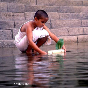 Bewildered by the widows' perpetual mourning, Chuyia bounces and fights, resisting the expectation that she join in the communal depression. Her head shaved at her husband's funeral, Chuyia looks like the other widows save for her startling youthfulness. But she can't imagine herself one of them, resisting as she can; she bites, observes another widow, "like a little bitch," then scurries away, running nowhere. Until she runs into Shakuntala (Seema Biswas, star of the remarkable Bandit Queen), who rubs turmeric paste into her head to cool it. "You saved me," smiles Chuyia, "like the goddess Durga," that is, a warrior goddess, fiercely independent and courageous.