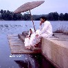 The widow is Kalyani (Lisa Ray), who alone wears long hair so that she can be prostituted to wealthy Brahmins across the river. When Chuyia first spots her -- in the doorway of the attic apartment where she lives apart from the others, so they might retain their "purity," the child is so struck by her light-eyed beauty that she calls her an "angel." Indeed, Kalyani is special in this hierarchy of widows: she keeps an illicit puppy in her room and invites Chuyia to play with her. They bathe in the Ganges, scamper in the rain, and gaze out on the shimmery river surface: water, in other words, grants them a certain, if brief, sense of freedom and connectedness.